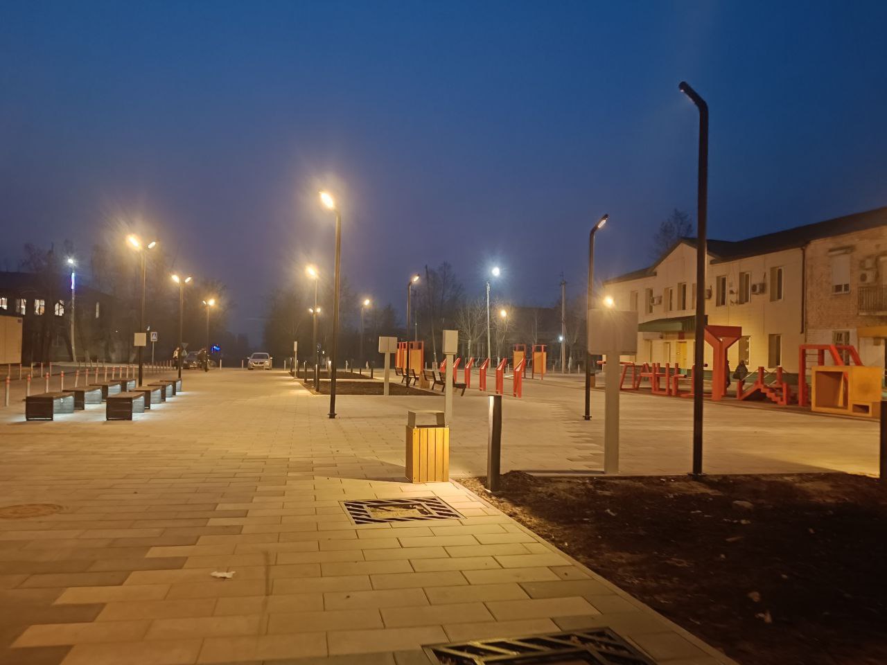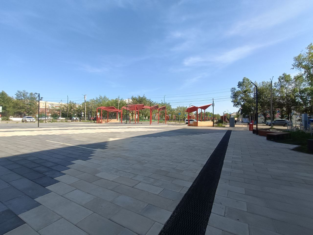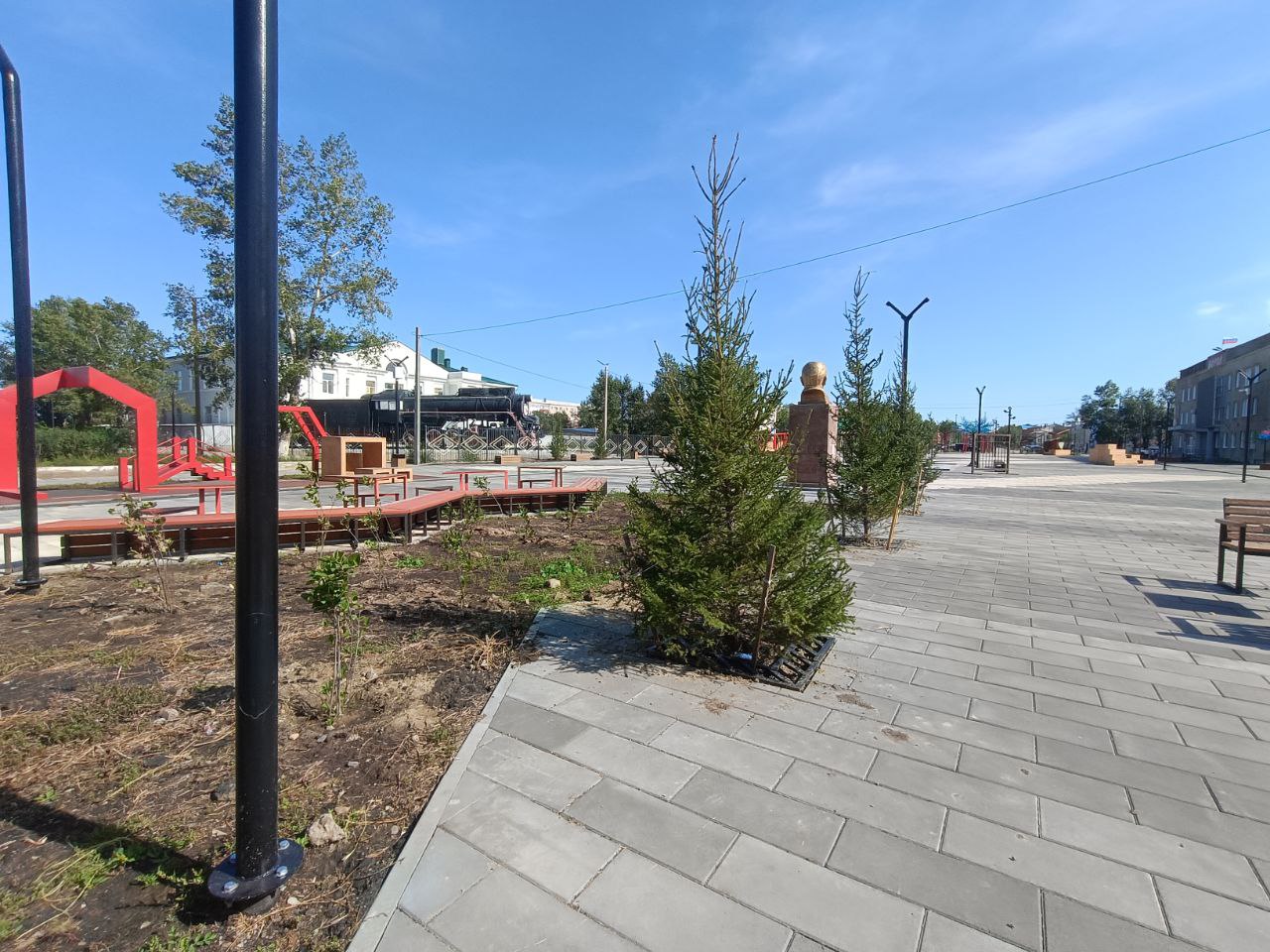 Благоустройство нашей площади длилось в несколько этапов. Первый из них – обустройство территории перед зданием, где находится отделение Пенсионного фонда и социальной защиты населения. Это пространство объединило саму площадь с мемориалом воинской славы, и теперь уже сложно представить себе, что это удобная современная территория выглядела как-то по-другому.